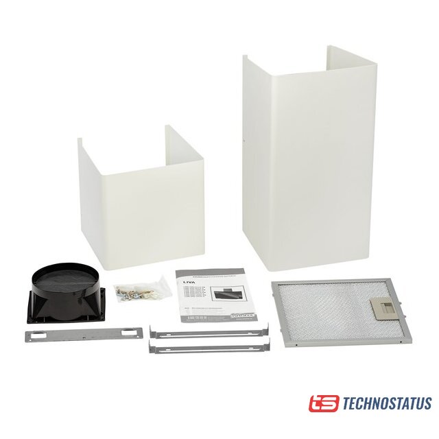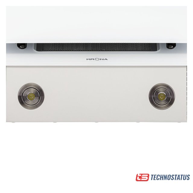 конструкция купольная, монтаж настенный, ширина 59.8 см, управление механическое/кнопочное, производительность мотора 650 м³/ч, цвет белый/серебристый