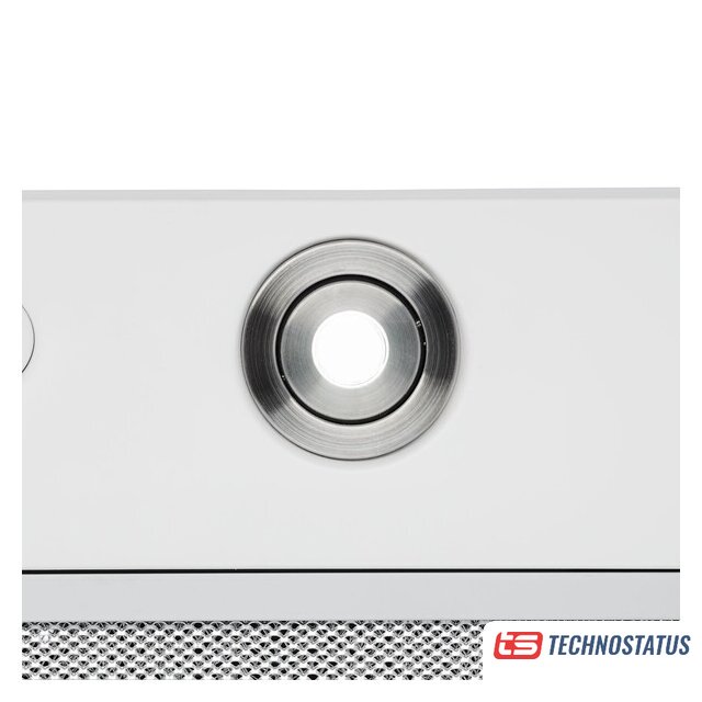 конструкция телескопическая, монтаж для встраивания, ширина 59.7 см, управление механическое/кнопочное, производительность мотора 700 м³/ч, цвет белый