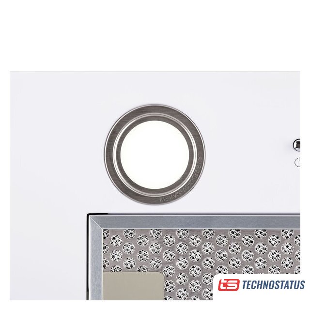 конструкция наклонная, монтаж настенный, ширина 60 см, управление механическое/кнопочное, производительность мотора 750 м³/ч, цвет белый