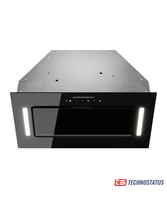 конструкция коробчатая, монтаж настенный, ширина 90 см, управление механическое/кнопочное, производительность мотора 550 м³/ч, цвет черный