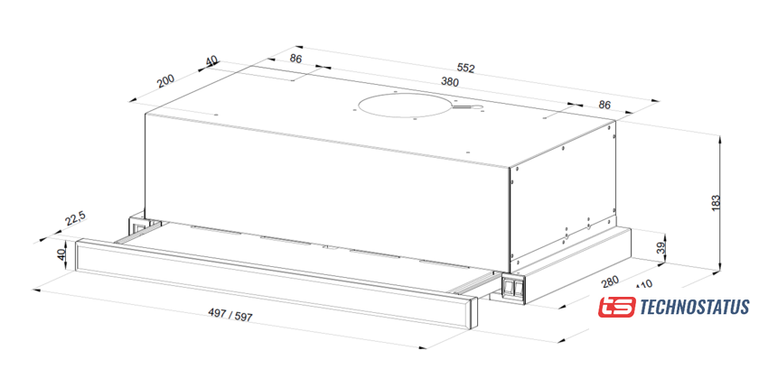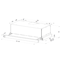 конструкция телескопическая, монтаж для встраивания, управление механическое/кнопочное, производительность мотора 390 м³/ч, ширина 60 см