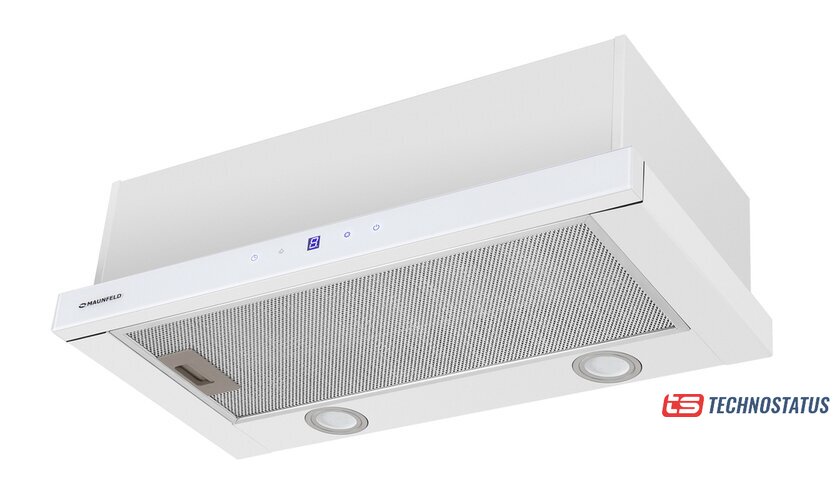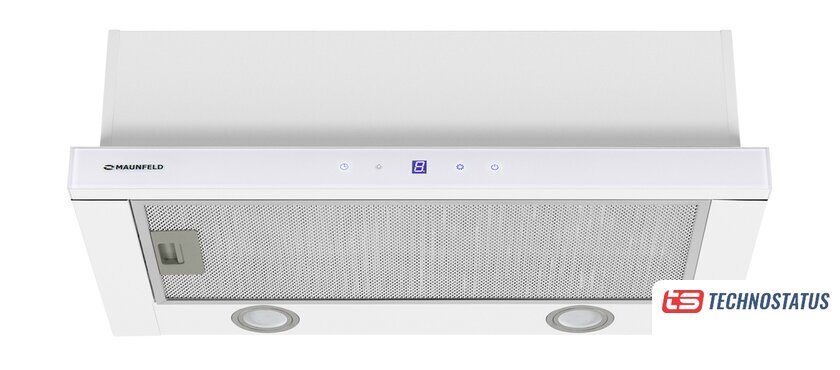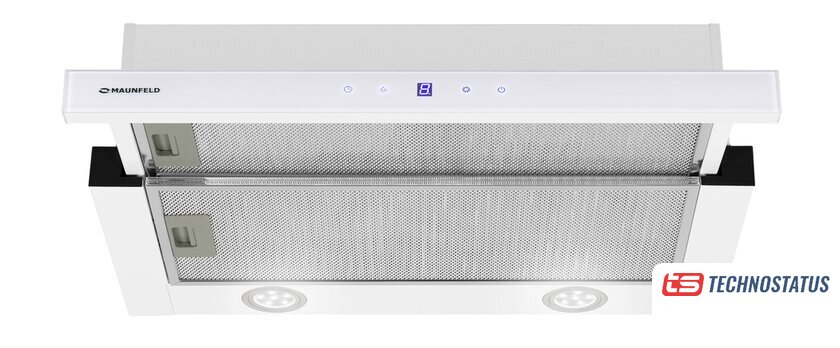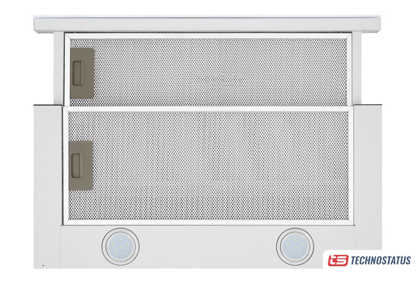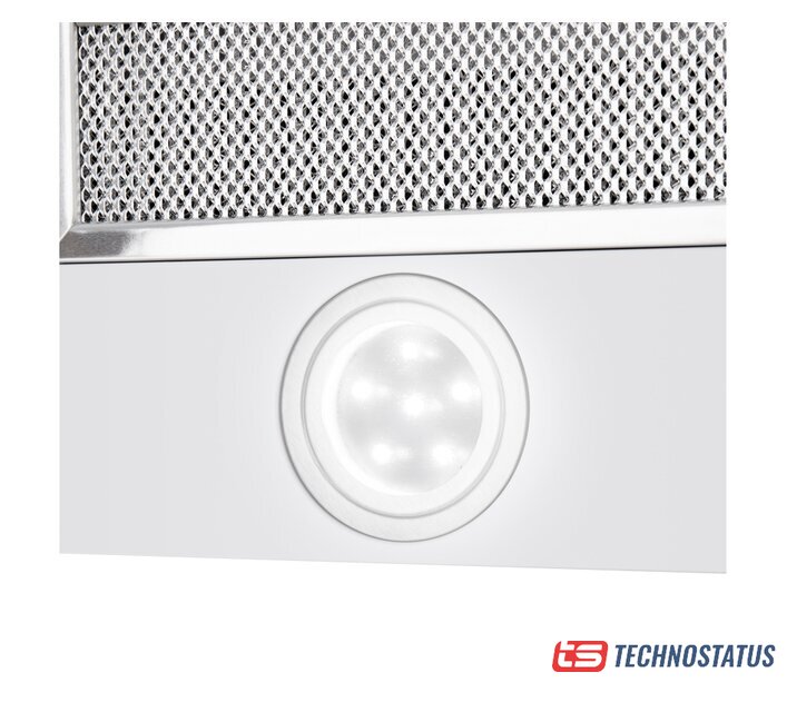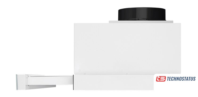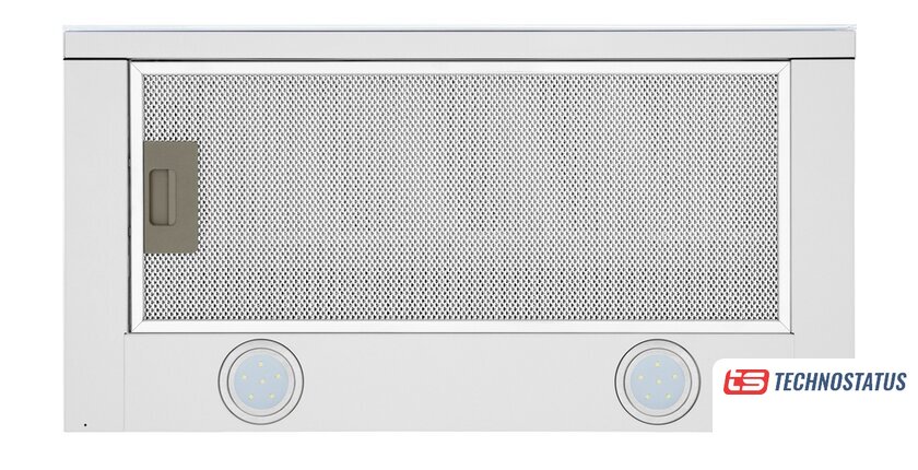 конструкция купольная, монтаж настенный, ширина 50 см, управление механическое/кнопочное, производительность мотора 750 м³/ч, цвет белый