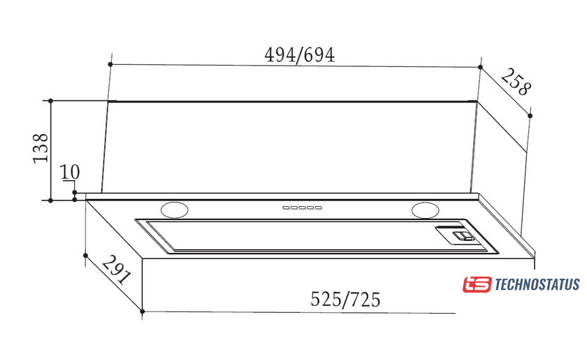 конструкция телескопическая, монтаж настенный/для встраивания, управление механическое/слайдерное, производительность мотора 550 м³/ч, ширина 60 см