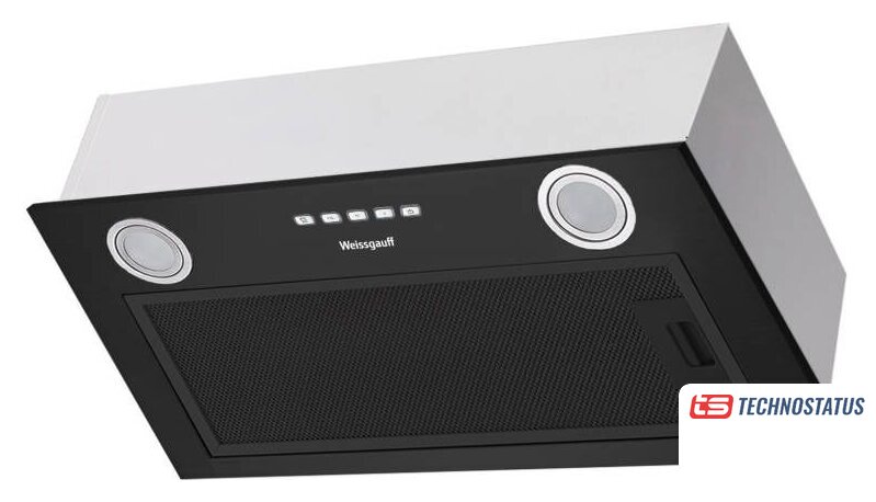 конструкция телескопическая, монтаж для встраивания, ширина 59.5 см, управление механическое/кнопочное, производительность мотора 600 м³/ч, цвет нержавеющая сталь