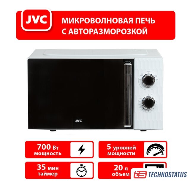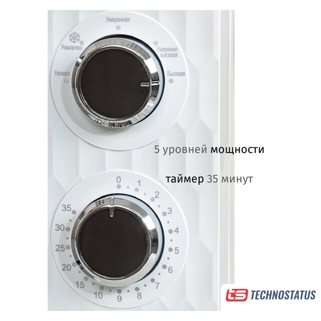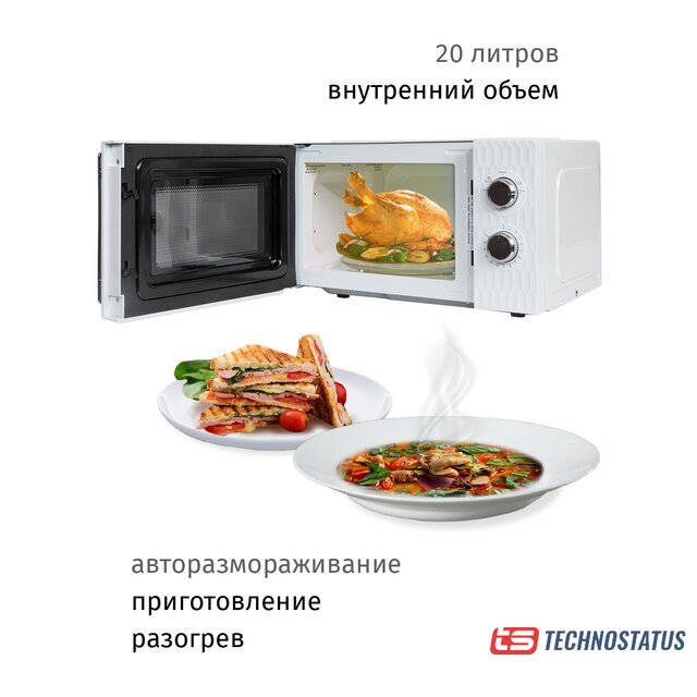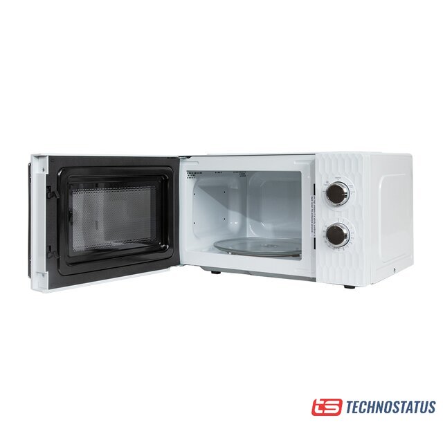 отдельностоящая, микроволны (соло), объем 20 л, выходная мощность микроволн 700 Вт, управление механическое, цвет белый/черный