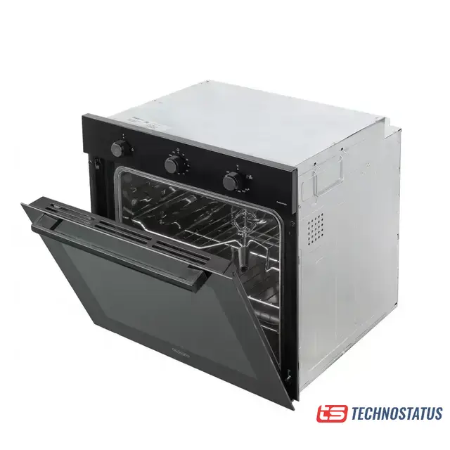газовый с конвекцией, объем 67 л, ретродизайн, 5 режимов, очистка каталитическая, 3 стекла в дверце, направляющие проволочные + телескопические (1 уровень)