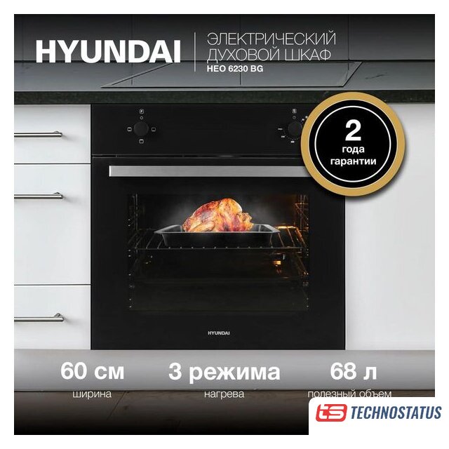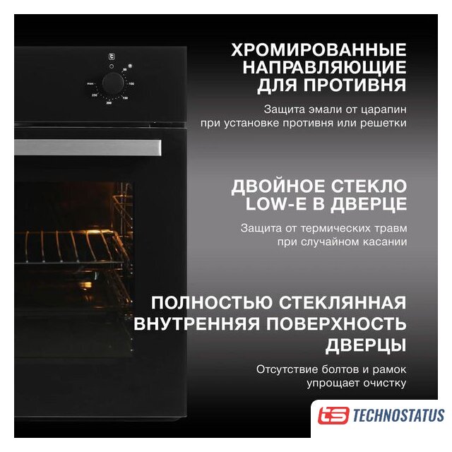 электрический с конвекцией, объем 62 л, 8 режимов, очистка ручная, 2 стекла в дверце, направляющие рельефные