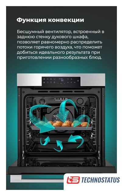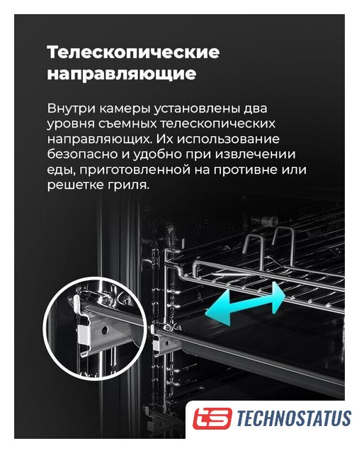 электрический с конвекцией, объем 64 л, 11 режимов, очистка каталитическая, проволочные направляющие, телескопические направляющие, термощуп