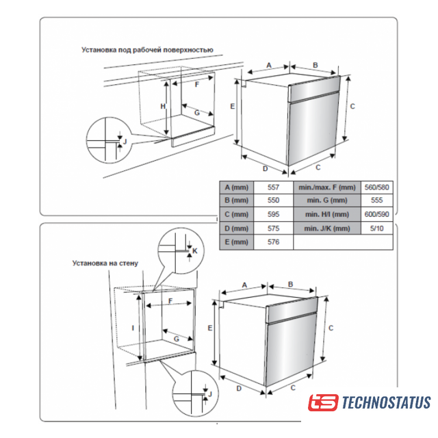 Размеры ниши для встраивания |