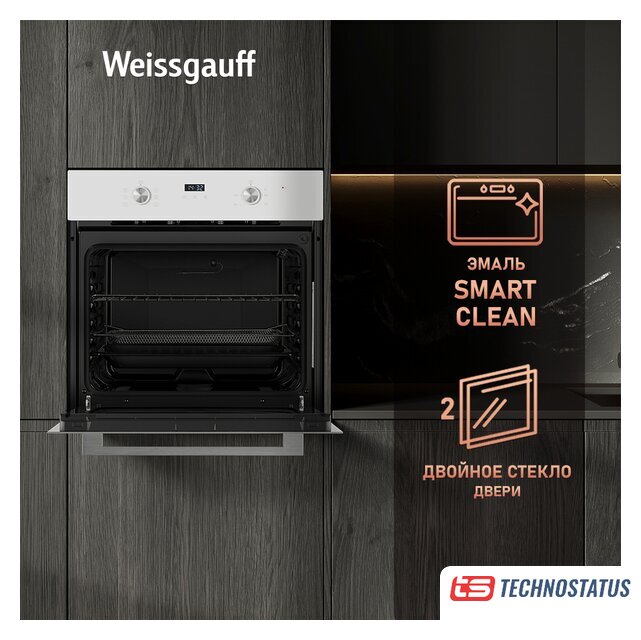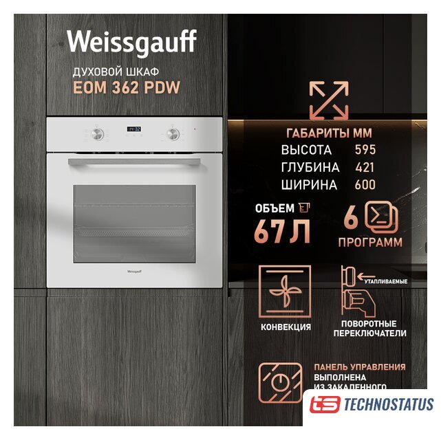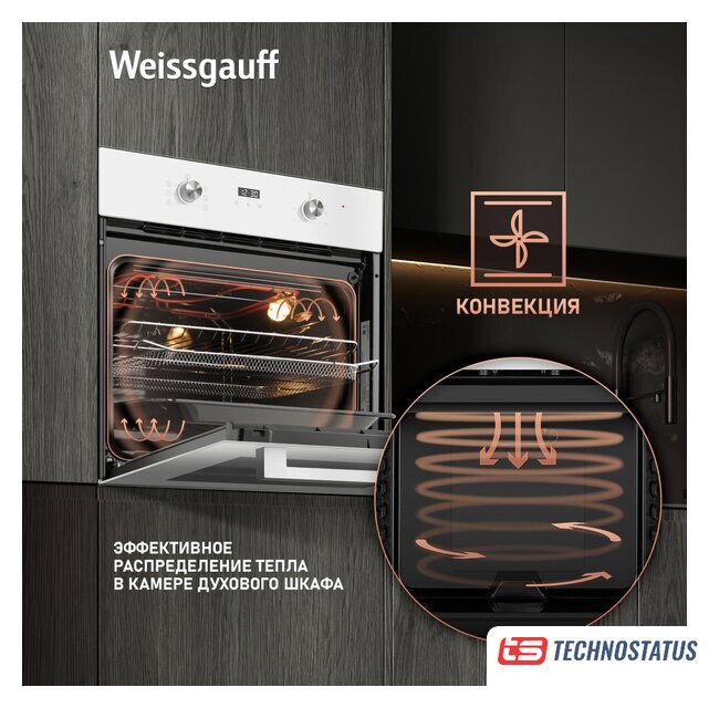 электрический с конвекцией, объем 60 л, 6 режимов, очистка ручная, направляющие проволочные, термощуп