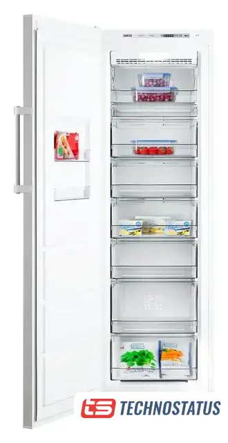 отдельностоящий, полный No Frost, электронное управление, класс A+, полезный объём: 357 л (211 + 125 л), зона свежести, перенавешиваемые двери, лоток для яиц, 59.5x66x206.8 см, белый