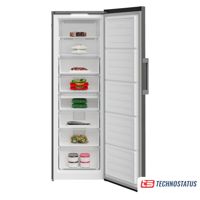 отдельностоящий, полный No Frost, электронное управление, класс A, полезный объём: 333 л (227 + 106 л), перенавешиваемые двери, лоток для яиц, 59.5x65.7x185 см, серебристый