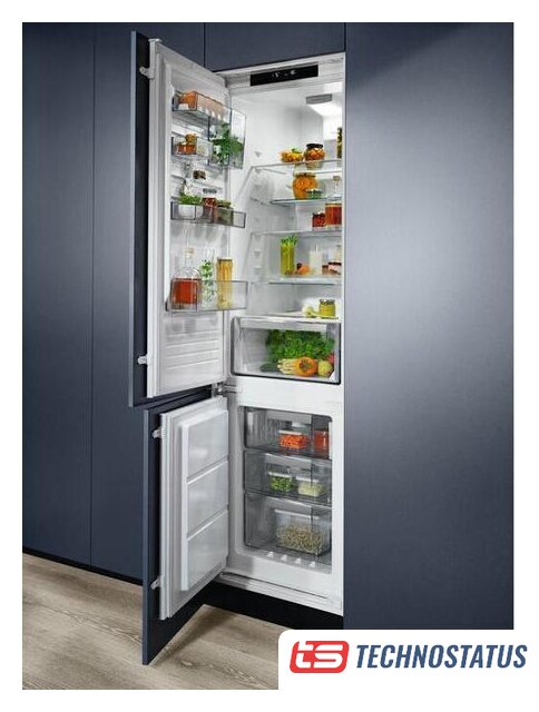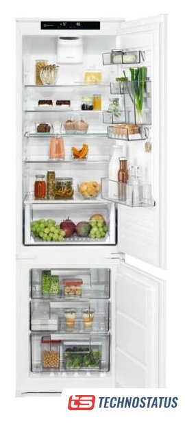 встраиваемый, No Frost (морозильная камера), электронное управление, класс A++, полезный объём: 253 л (192 + 61 л), инверторный компрессор, перенавешиваемые двери, складная полка, лоток для яиц, 54x54.9x177.9 см, белый