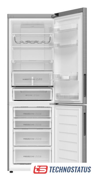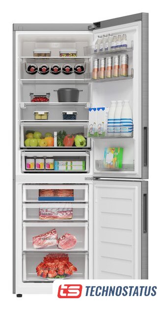 отдельностоящий, No Frost (морозильная камера), электронное управление, класс A, полезный объём: 360 л (266 + 94 л), инверторный компрессор, перенавешиваемые двери, лоток для яиц, 59.7x67.5x201.5 см, белый