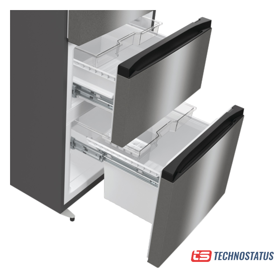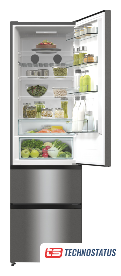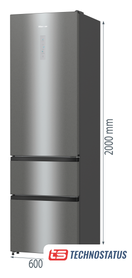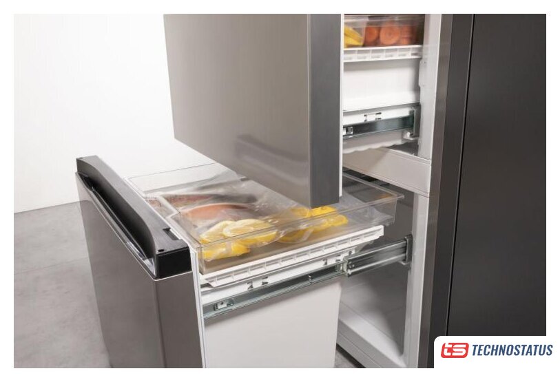 отдельностоящий, полный No Frost, электронное управление, класс A+, полезный объём: 504 л (337 + 167 л), инверторный компрессор, лоток для яиц, 90.8x64.7x177.5 см, серебристый