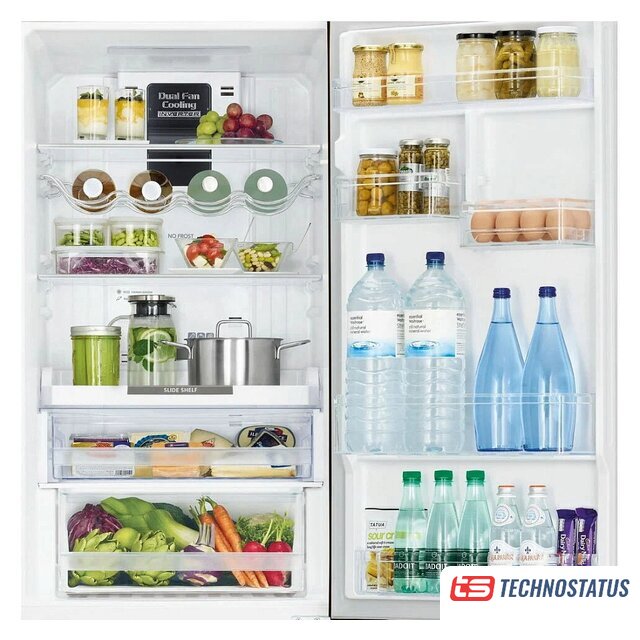 отдельностоящий, полный No Frost, электронное управление, класс A++, полезный объём: 451 л (329 + 122 л), инверторный компрессор, складная полка, лоток для яиц, 70x70x185 см, нержавеющая сталь