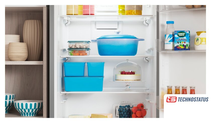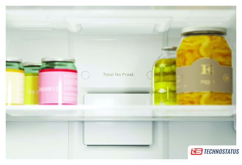 отдельностоящий, полный No Frost, электронное управление, класс A, полезный объём: 298 л (220 + 78 л), перенавешиваемые двери, лоток для яиц, 60x64x185 см, бежевый