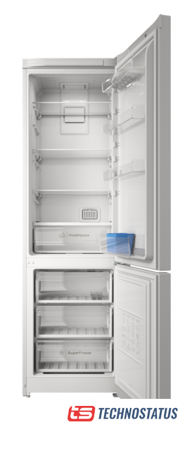 отдельностоящий, полный No Frost, электронное управление, класс A+, полезный объём: 357 л (211 + 125 л), зона свежести, перенавешиваемые двери, автодоводчик дверей, складная полка, полка для вина, лоток для яиц, 59.5x66x206.8 см, белый
