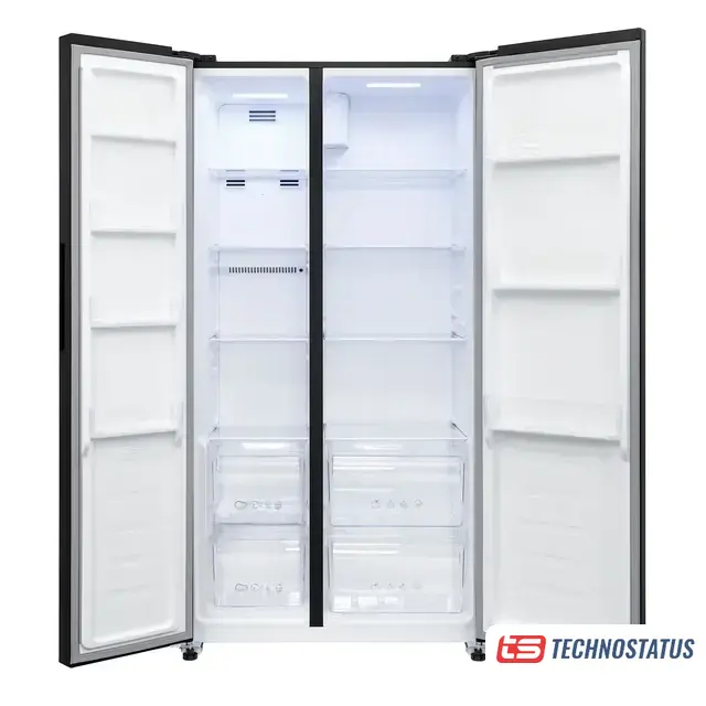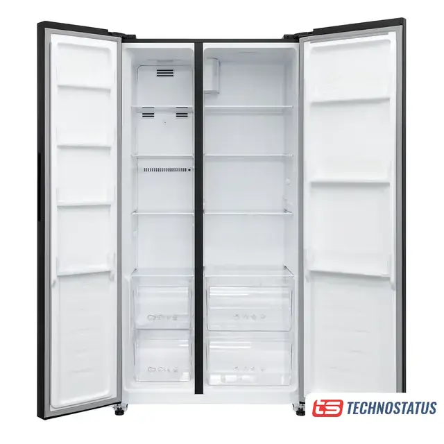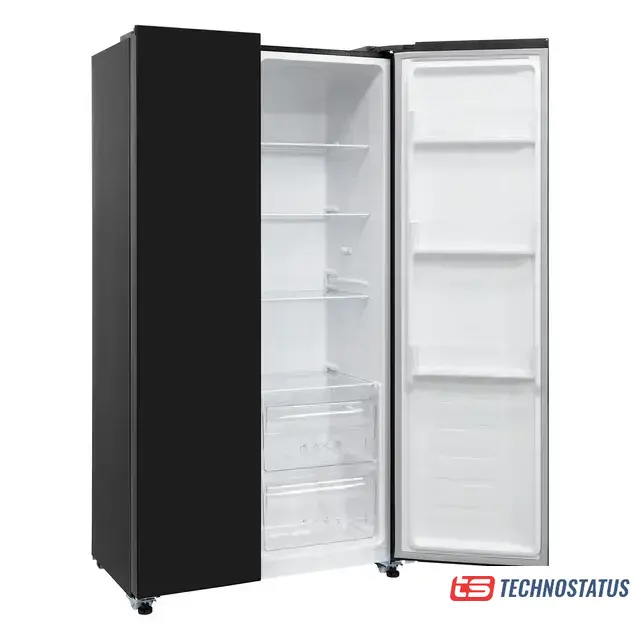 полный No Frost, электронное управление, класс A+, полезный объём: 496 л (331 + 165 л), 91.1x63.6x178 см, черное стекло
