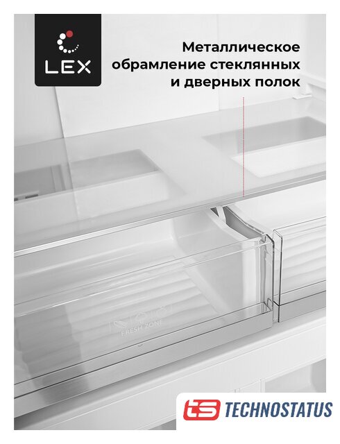 отдельностоящий, полный No Frost, электронное управление, класс A+, полезный объём: 351 л (257 + 94 л), зона свежести, перенавешиваемые двери, полка для вина, лоток для яиц, отделка: стекло, 59.5x63.5x200 см, белый