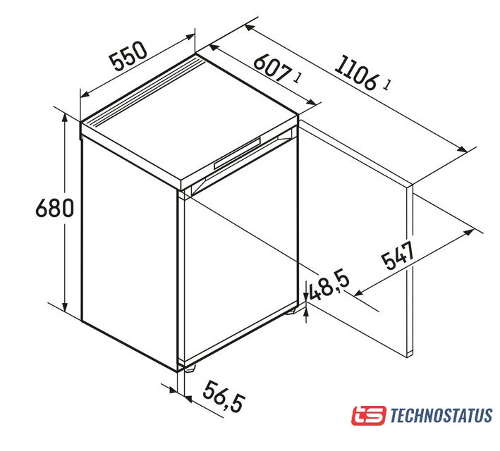 отдельностоящий, без No Frost, механическое управление, класс A, перенавешиваемые двери, 60.2x61.5x130 см, графит