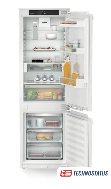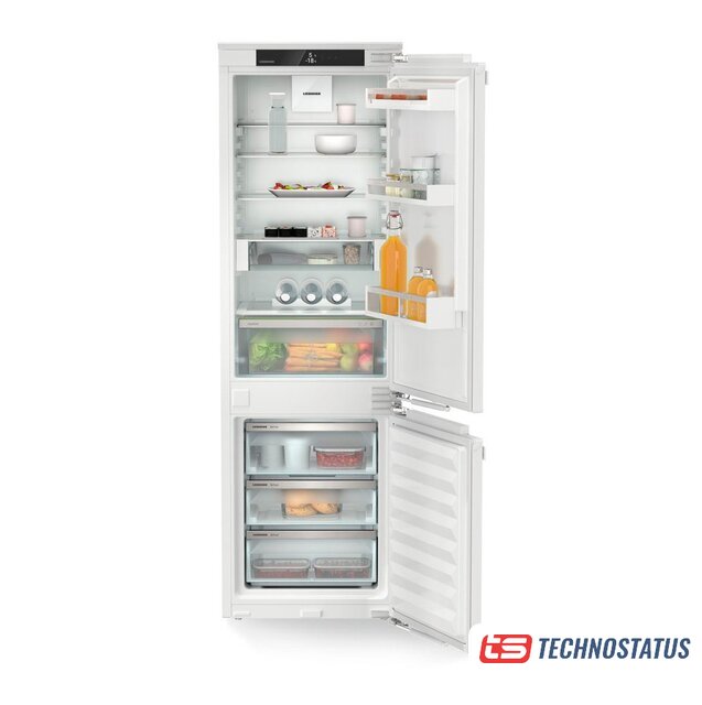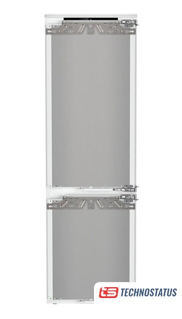 встраиваемый, полный No Frost, электронное управление, класс A++, полезный объём: 254 л (185 + 69 л), инверторный компрессор, зона свежести, перенавешиваемые двери, полка для вина, лоток для яиц, 54x54.5x177.5 см, белый