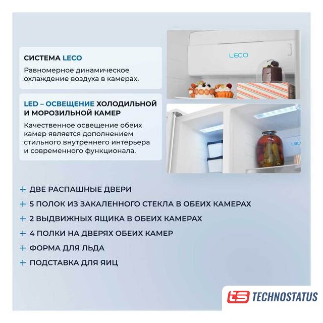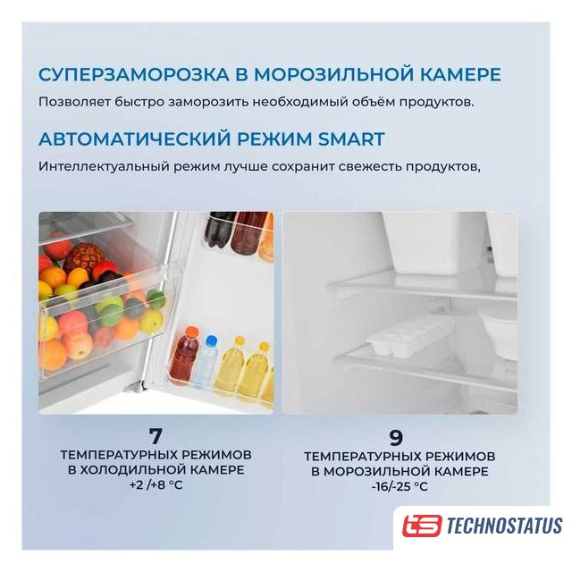 Оригинальные функции | LED освещение; Режим Smart: автоматический режим для наилучшего сохранения свежести продуктов и экономного расхода электроэнергии Функция Power-Off Memory - сохранение настроек при отключении электричества Функция Power-On Delay - задержка включения компрессора после сбоя питания менее 5 минут для его защиты от повреждения |