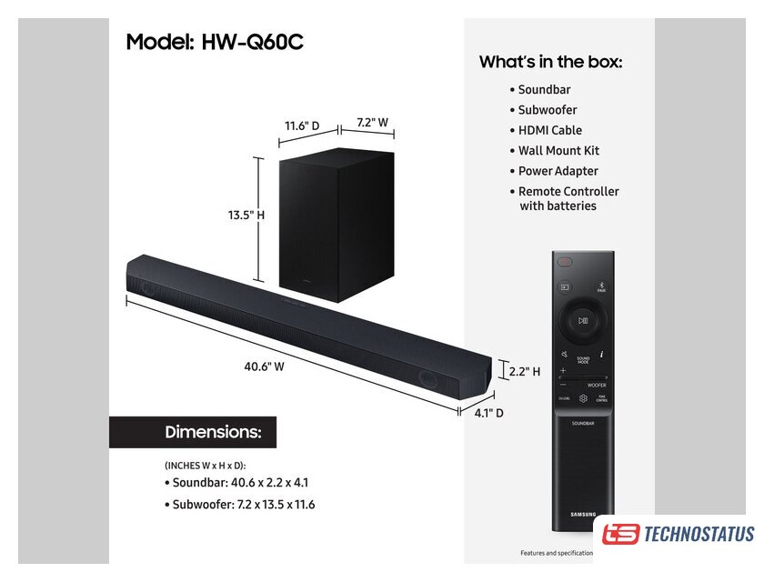саундбар 2.1, 300 Вт, частота 40-20000 Гц, Bluetooth, HDMI ARC, HDMIx1, цвет черный