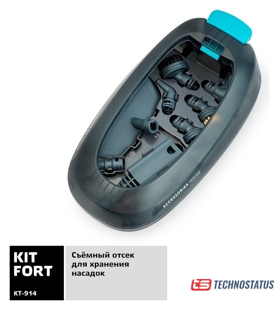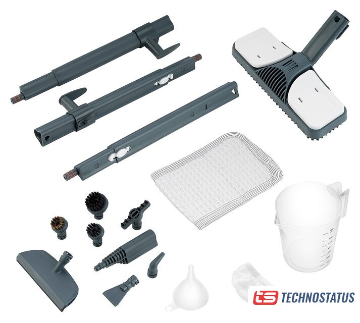 | Дополнительные насадки и приспособления | угловая насадка, плоская ворсовая щетка, большая и маленькая нейлоновые щетки, латунная щетка, мерный стакан, воронка, скребок |