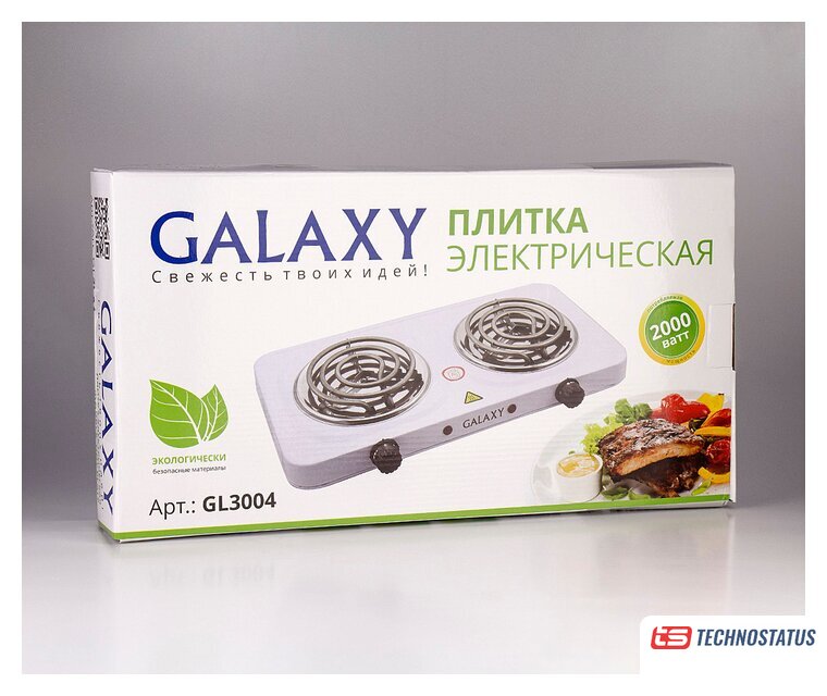 электрическая плита, 2 конфорки, 2250 Вт, 48×28×8.2 см