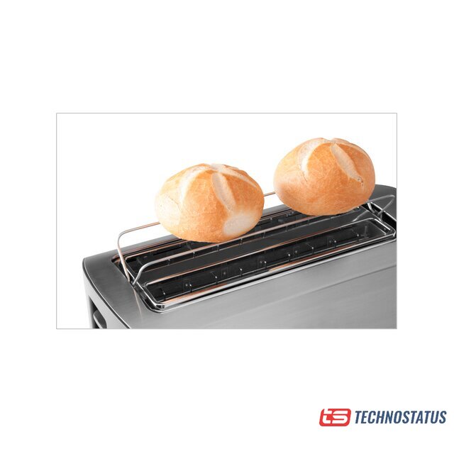 1000 Вт, количество тостов: 2, корпус: металл, решетка для подогрева булочек, 9 степеней обжаривания, цвет нержавеющая сталь