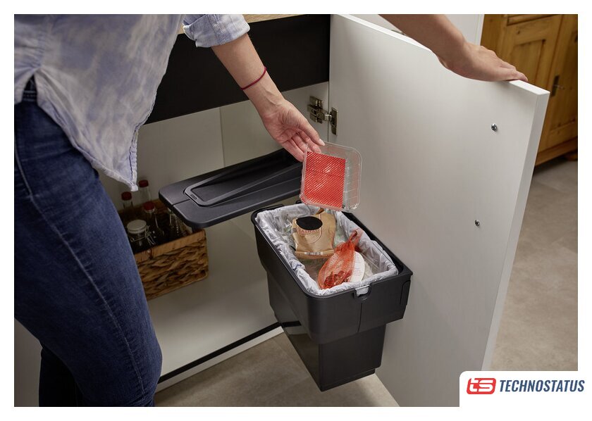 Особенности конструкции | Контейнер легко снимается вверх, Легкодоступно, открыв дверцу нижнего шкафа. |