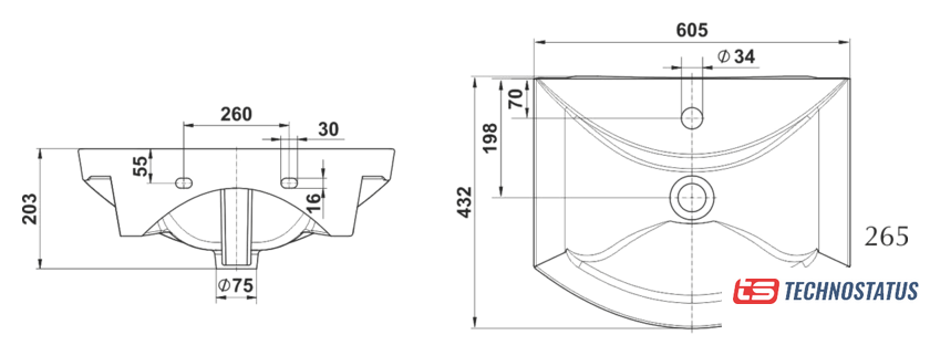 накладной, фарфор, крепление на стену/на пьедестал/на полупьедестал/на мебельный шкаф