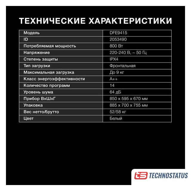| Уровень шума при сушке | 64 дБ |