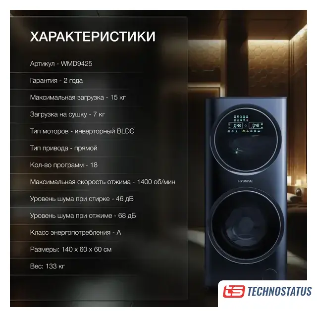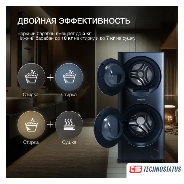 Technostatus.by предлагает купить в Минске стирально-сушильную машину Hyundai.