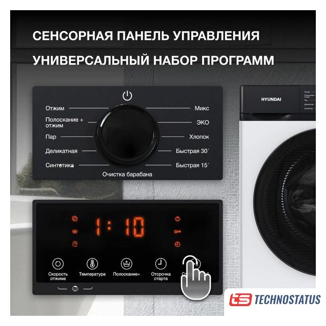 | Все программы | Микс Эко Хлопок Быстрая 30 мин Быстрая 15 мин Очистка барабана Отжим Полоскание и отжим Пар Деликатная Синтетика |
